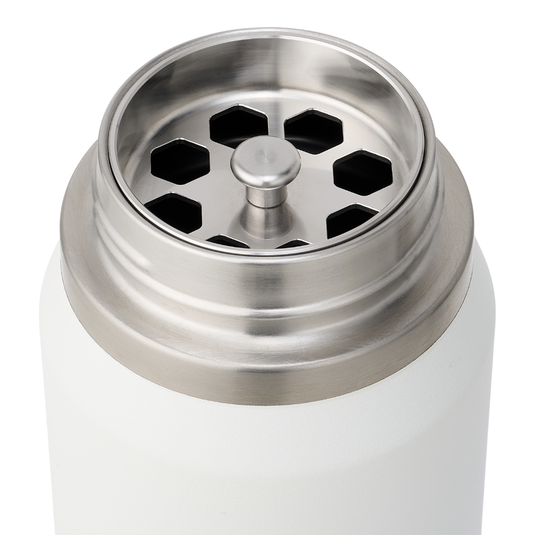 Op het RVS waarvan de fles is gemaakt kan er na verloop van tijd kalkaanslag ontstaan. Gebruik voor het reinigen hiervan geen agressieve schoonmaakmiddelen of kokend water. Met een mengsel van azijn en water en een zachte borstel reinig je de binnenkant van de fles op milde en effectieve manier. Lees de gebruiksaanwijzing voor het exacte stappenplan van het reinigingsproces.