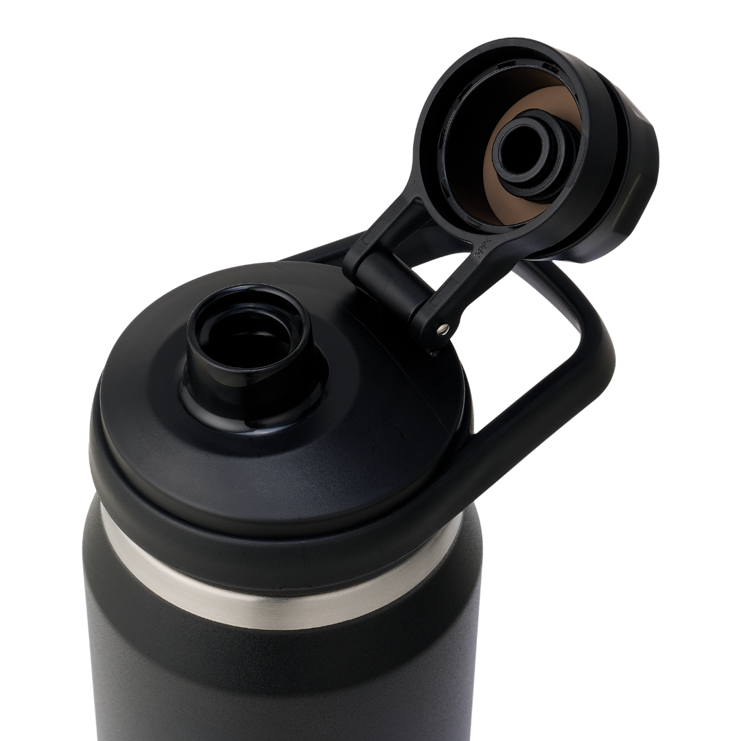 Vul de fles met water door het volledige bovenste deel van de fles af te draaien. De technologie in de fles zorgt ervoor dat het water direct coherent wordt en blijft. Drink uit de fles door het mondstukje bovenop de dop los te draaien en vast te klikken. Na gebruik draai je het mondstukje terug op de dop en vervoer je de fles overal naartoe.