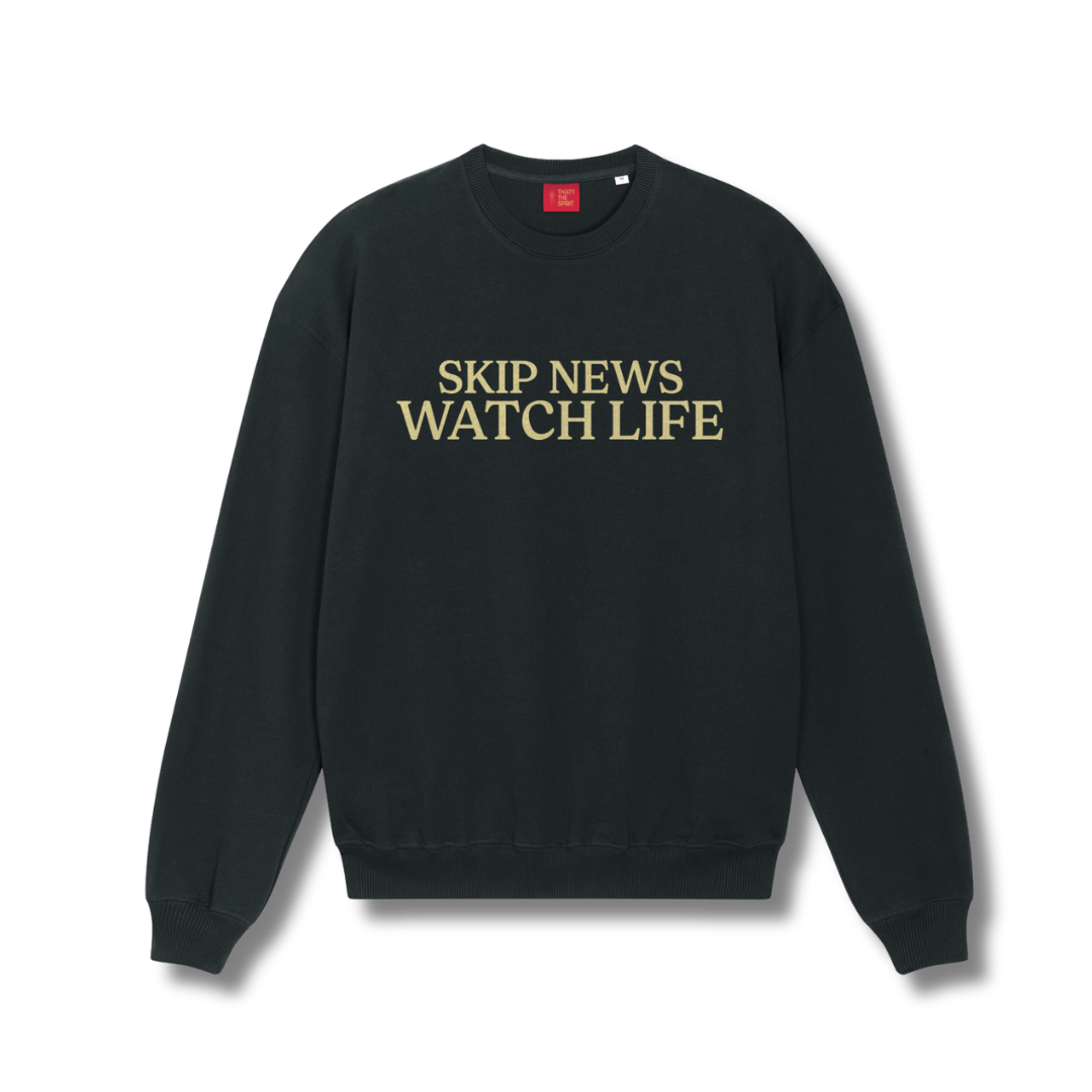Een trui met een boodschap! Skip News Watch Life was de slogan van ons allereerste event in Ahoy in 2022. Vandaag de dag kunnen we daar nog steeds 100% achter staan. Het nieuws vertelt je niet wat belangrijk is; daarvoor moet je naar het leven zelf kijken.
