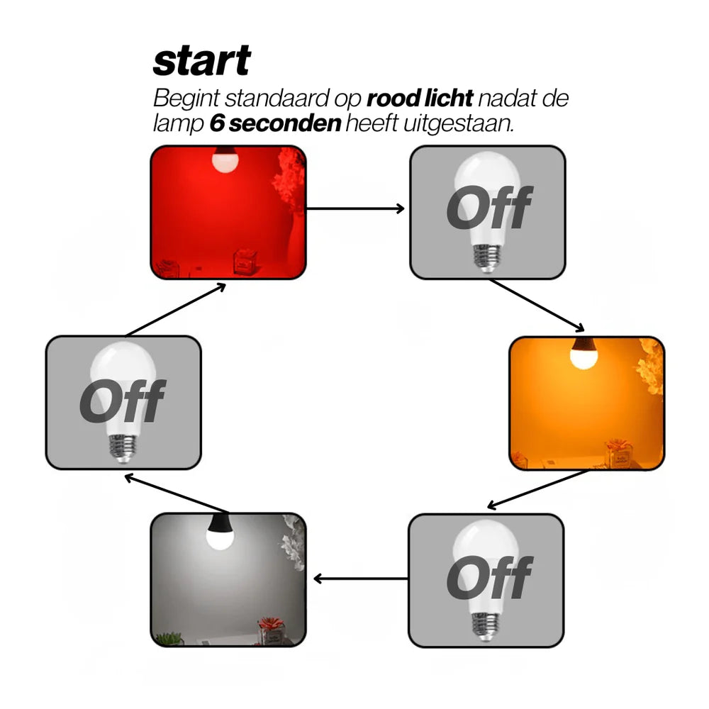 Breng rust in je avonden met de Alina 3-Kleuren Indraailamp. Deze unieke, slaapvriendelijke E27 lamp past zich moeiteloos aan jouw avondritme aan. Met één simpele handeling wissel je tussen rood licht, warm amber en functioneel wit licht zonder apps, afstandsbediening of fel licht op de verkeerde momenten.