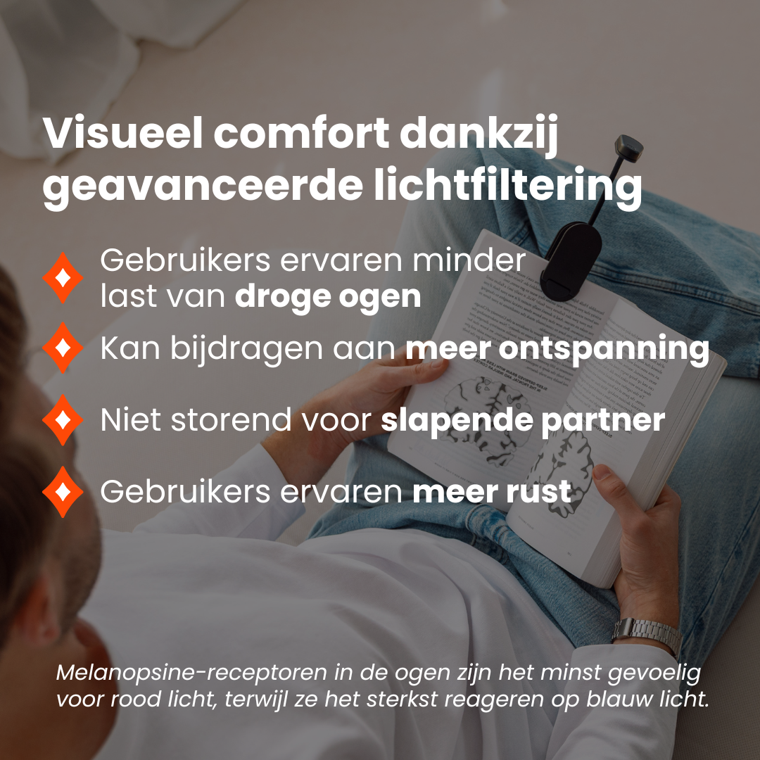 Wil je ‘s avonds ontspannen lezen of werken zónder je bioritme te verstoren? De Alina leeslamp met 100% rood licht (660 nm) is speciaal ontworpen om je ogen én je slaap te ondersteunen. Waar blauw licht je wakker houdt, helpt deze lamp je juist tot rust komen. Perfect voor op je nachtkastje, aan je bed of gewoon op je boek geklemd.