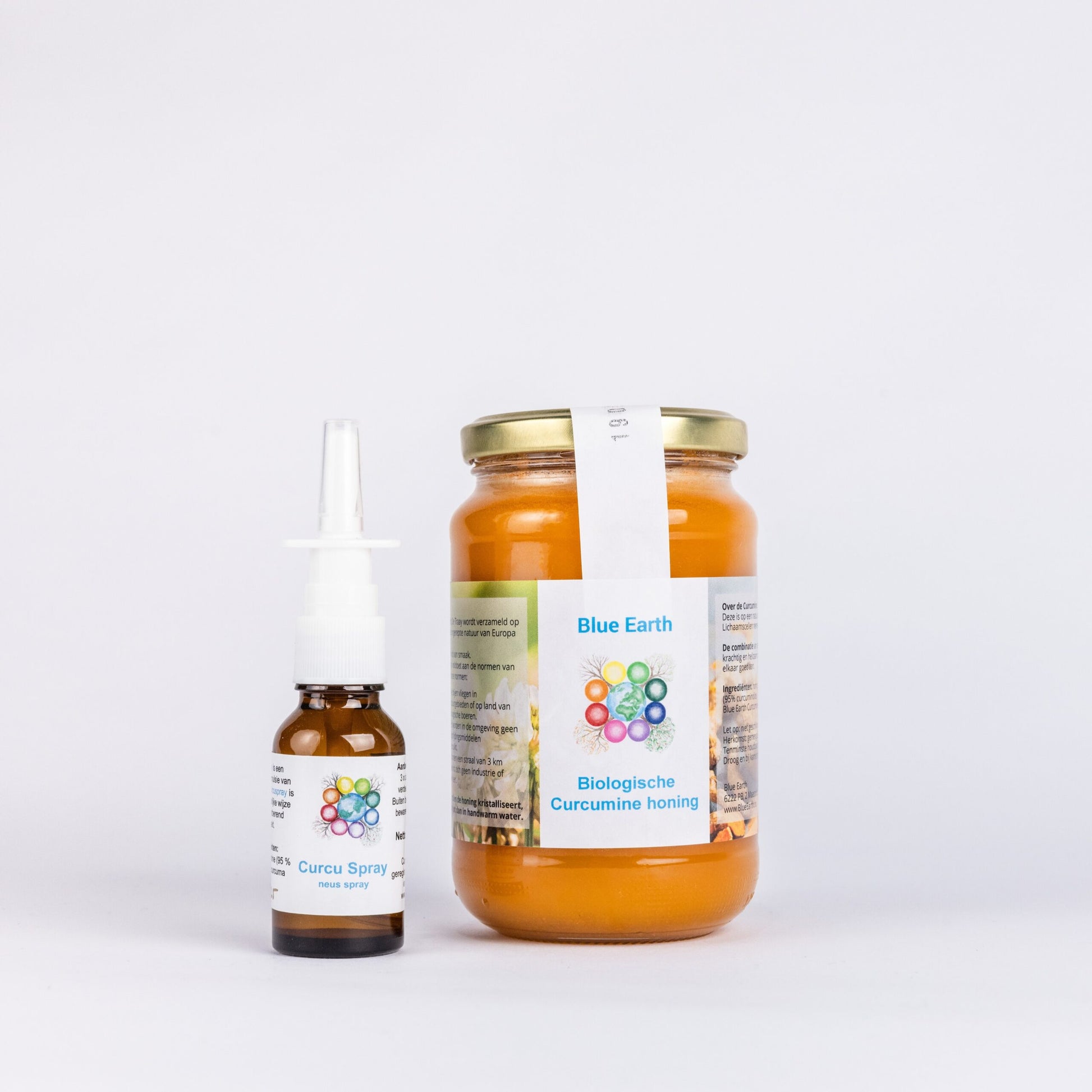 De koude maanden vragen om wat extra ondersteuning van binnen én van buiten. Dit combipakket van Blue Earth brengt twee krachtige vormen van curcumine samen: de zachte, biologische curcumine honing en de directe opname via de curcumine neusspray. Ideaal om je dagelijkse ritueel te verrijken met de kracht van dit gouden kruid!