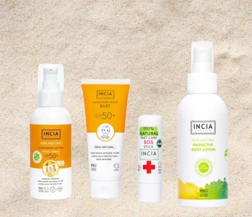 Zon, zee, zand, gevoelige huidjes, insecten… Met deze bundel ben je voorbereid op alles wat een zomerse dag brengt! Een natuurlijke zonnebrandcrème voor volwassenen, een extra zachte variant voor baby’s en kinderen, een kalmerend insectenmiddel én een SOS-stick met duindoorn en sheaboter voor kleine ongelukjes. Alles van INCIA is gemaakt zonder troep, zonder geurstoffen, 100% natuurlijk en geschikt voor de gevoeligste huid.