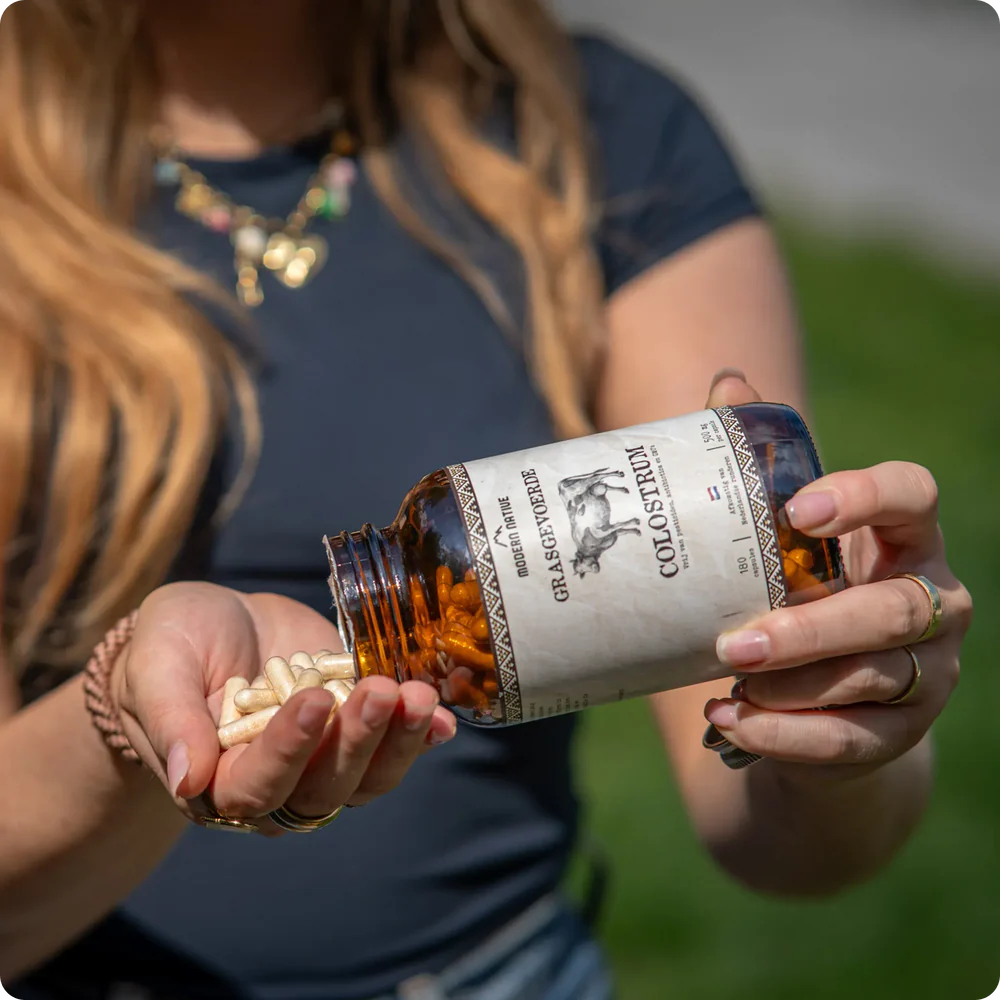 Colostrum wordt ook wel “de eerste melk” genoemd: het is de kostbare voeding die een kalf direct na de geboorte van zijn moeder krijgt. Dit natuurlijke elixer zit vol unieke bioactieve stoffen die in gewone melk nauwelijks of helemaal niet voorkomen. Denk aan immunoglobulinen, groeifactoren, lactoferrine en een breed scala aan vitaminen, mineralen en aminozuren. Colostrum is eigenlijk supermelk: puur, voedend en rijk aan bouwstenen die je lichaam dagelijks kunnen ondersteunen.