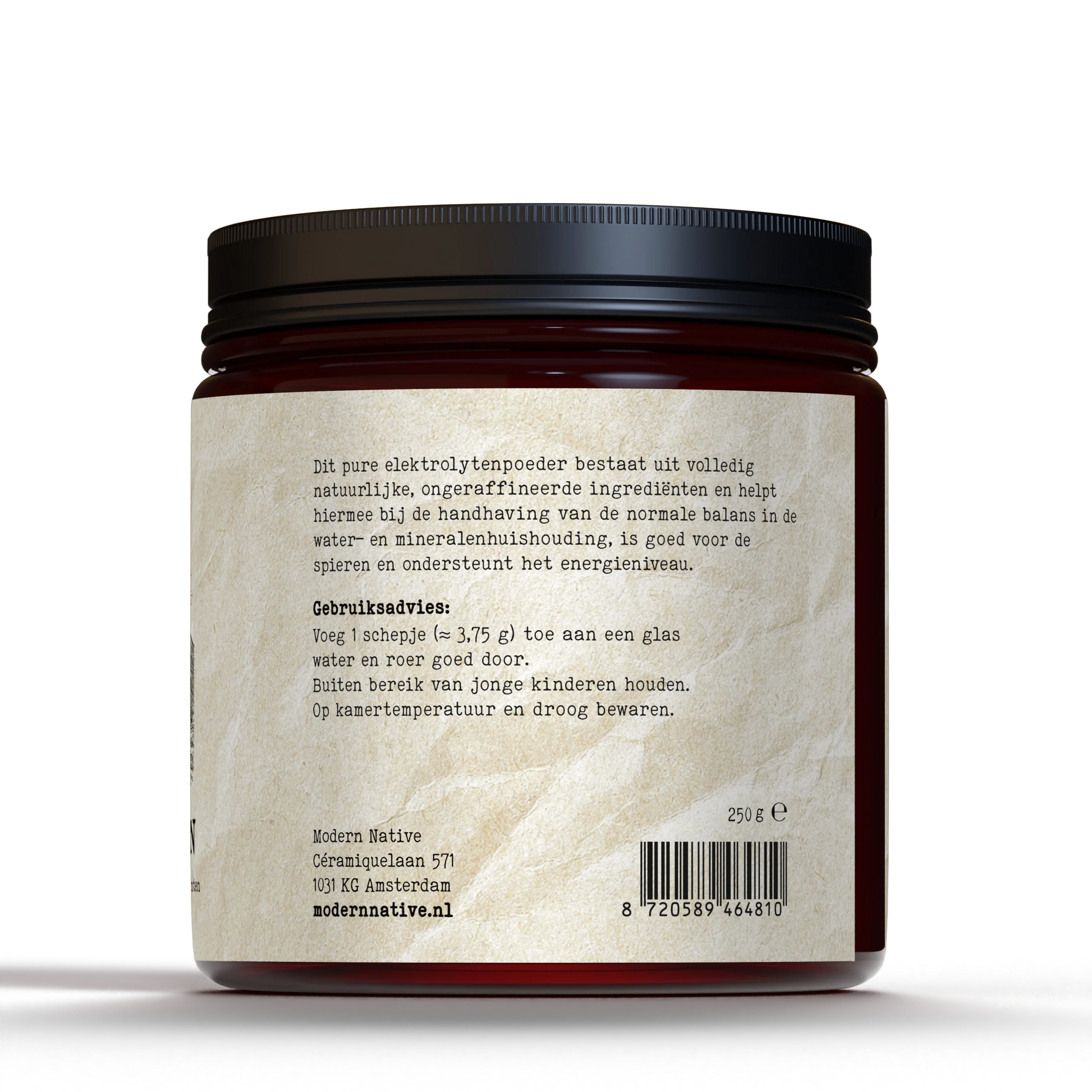 Elektrolyten zijn essentiële mineralen zoals natrium, kalium, magnesium en chloride. Je verliest ze bij zweten en zonder ze raakt je lichaam uit balans. Deze zorgvuldig samengestelde elektrolyten van Modern Native kunnen bijdragen aan het aanvullen van essentiële mineralen en het ondersteunen van een optimale hydratatie.