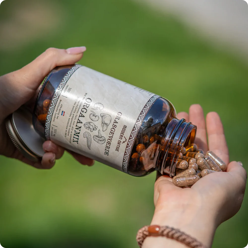 6 capsules staat ongeveer gelijk aan 15 gram vers orgaanvlees.